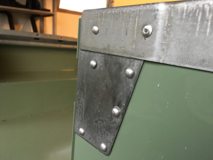 The new rear panels are different to the originals in that they have a reinforcing box-section along up inside upper edge. The top capping should be held in place with dome head rivets but the new box section won’t allow access to the stem of the rivet…. Pop rivets had to be used in this location but thats the only deviation to the original design.