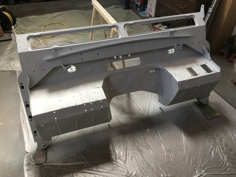 After much faffing, I got round to priming and painting the bulkhead this week. An acid etch primer was used to provide a good key onto the galvanised surface.