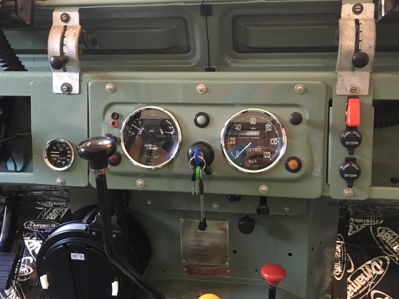 In these older vehicles it is possible to switch the dashboard lights on and off. (anyone know why a civilian vehicle would require this?) It turned out that both of the brass terminals on the switch were heavily corroded and needed a clean up. 5 mins to remove the switch and wiring. 5 mins to clean the terminals with some emery cloth. 5 mins to refit and hey presto…. LIGHT 🙂