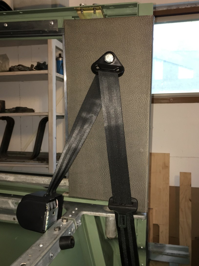 The forward pair (just behind the front seats on either side) needed a hole drilled to accommodate the new seat belt upper bracket and it was important to get the location absolutely correct…. which I did fortunately… Twice 🙂