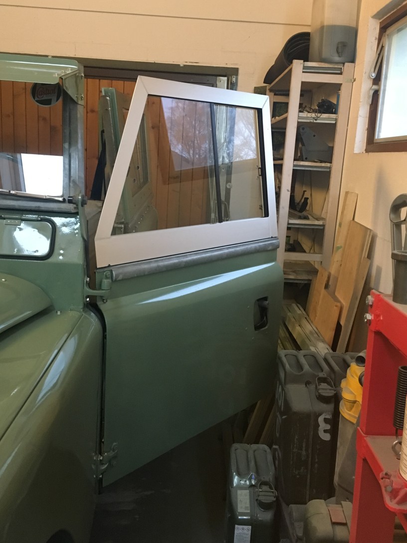 Series Land Rover doors, come in two parts. The bottom and the top. I’m fortunate enough to have a new set of Rocky Mountain door tops from Canada and are reported to be the best replacement door tops on the market. I’ve had them on a Series 3 before and they are excellent. They don’t rattle, don’t rot at the first sight of moisture and don’t let rain in…. PLUS… both panes of glass can be opened and closed.