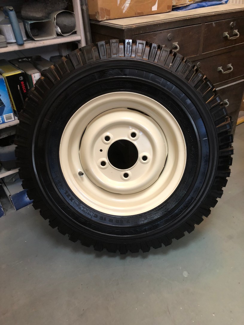 As mentioned before, I plan to hang a second spare wheel on the back door. As the original vehicle only had 5 wheels, I’d bought a replica rim at some point last year.