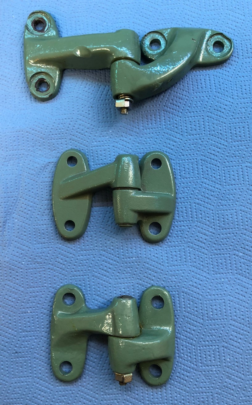 The rear door needed the door hinges installed, so I dug them out of storage and got on with fitting them to the door.
