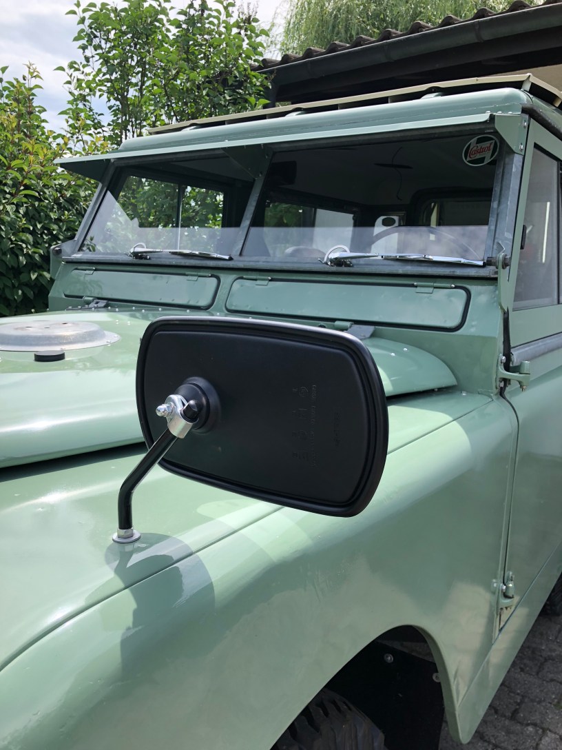The original wing mirrors (so named as they are mounted on the wings, not on the doors), fixed on the new arms had a tendency to move “off view” at the slightest touch.