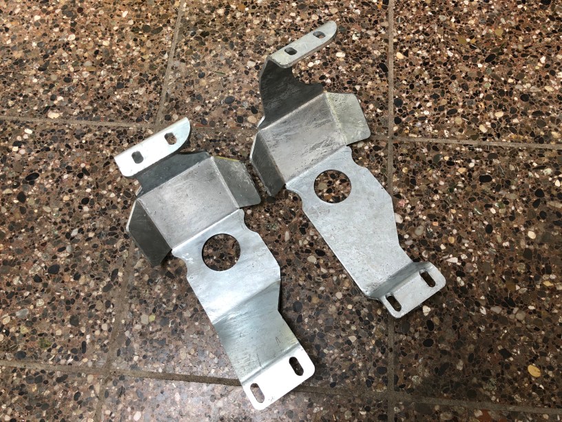 Both differentials are identical but the guards are a slight different shape. One is totally flat on the underside, the other, has an additional angle. I assume the flat one is for the front axle but by some queer quirk of fate, I ended up starting to fit the rear guard to the front axle. No matter, they’re interchangeable with or without the holes.