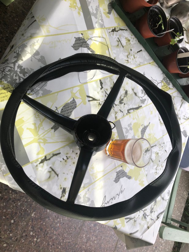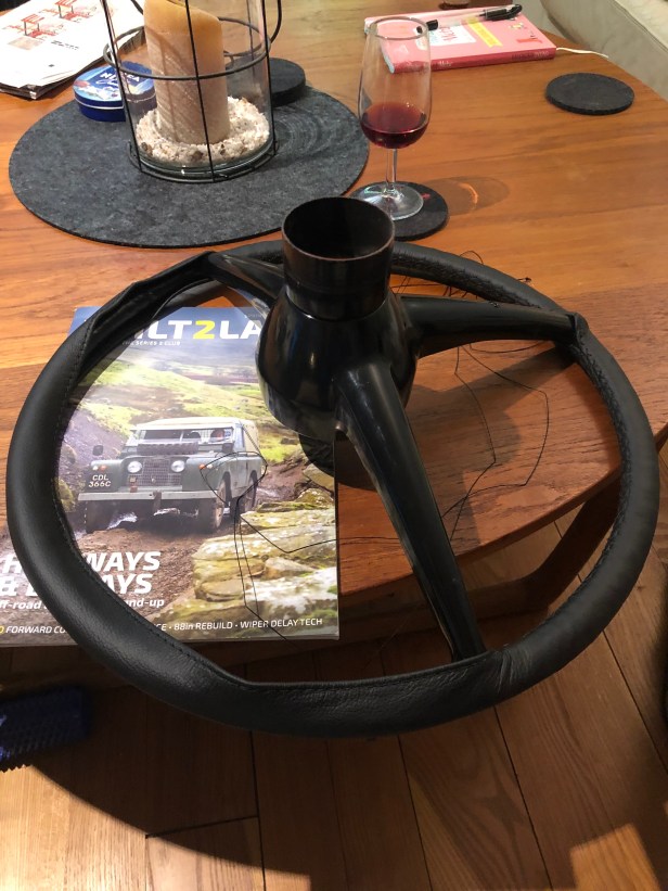 It was going to be a lot easier to do this with the steering wheel removed… in the garden… with a beer… on a Friday evening.