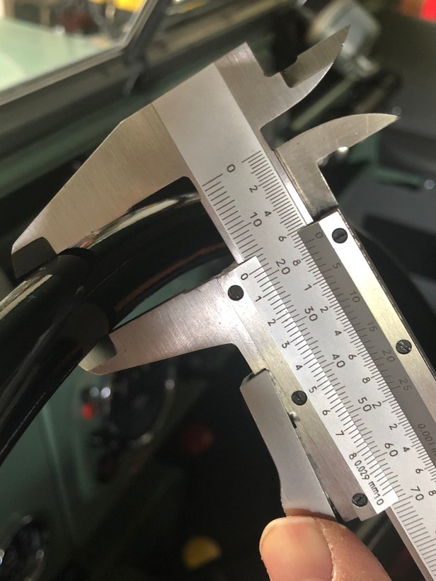 Although it doesn’t show up so well, the bead on the upper half (and narrower part) of the steering wheel would overlap. Once stitched up, all this would be loose. Not a good combination for a steering wheel.