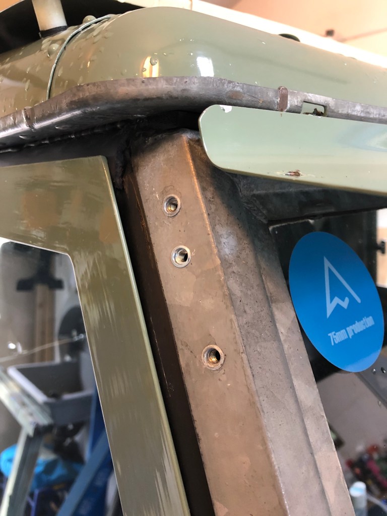 To necessitate fitting of the pipe, a new rivnut was placed in the windscreen frame. To make this possible, the end panel of the sun shield was removed.