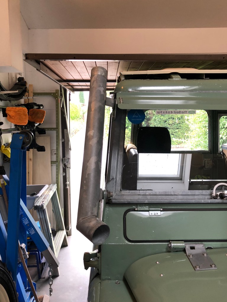 I had been worried that the pipe and air cleaner would foul the sun shield but it seems Land Rover had thought about how their optional extras interact with one another.