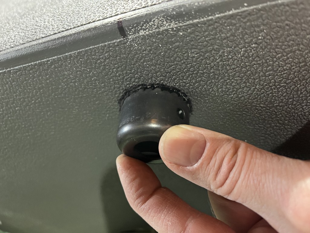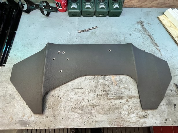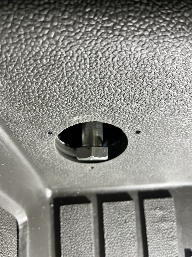 Using a bradawl, I punched a small hole through the mat and verified it lined up with the corresponding captive nut on the gearbox.