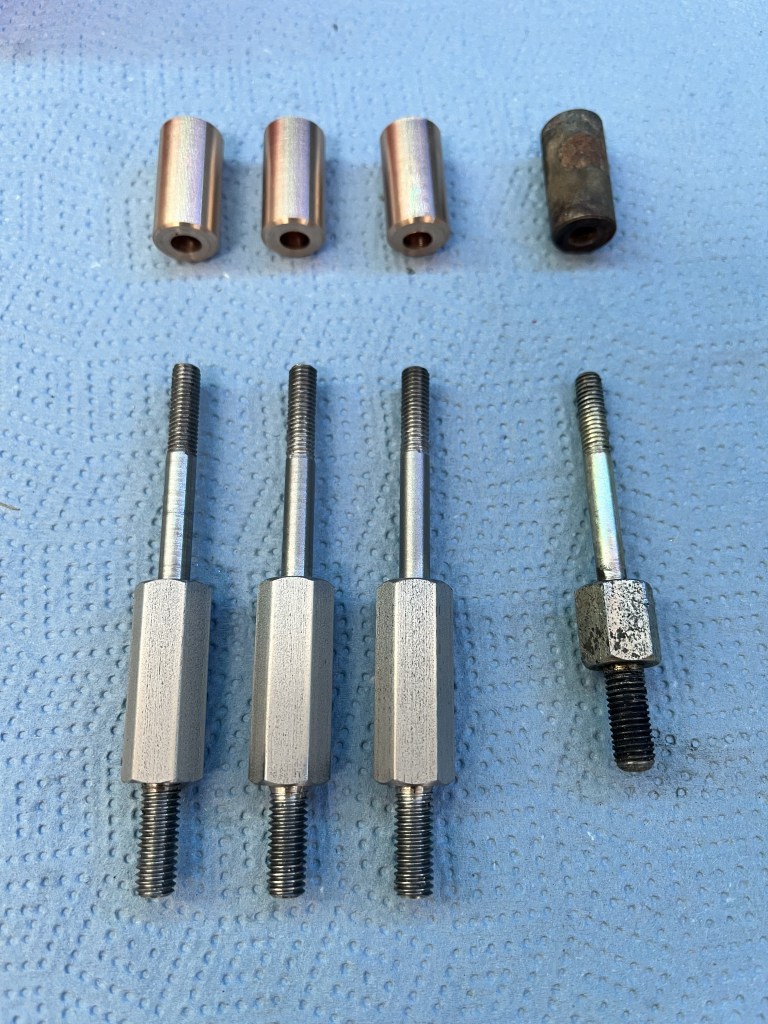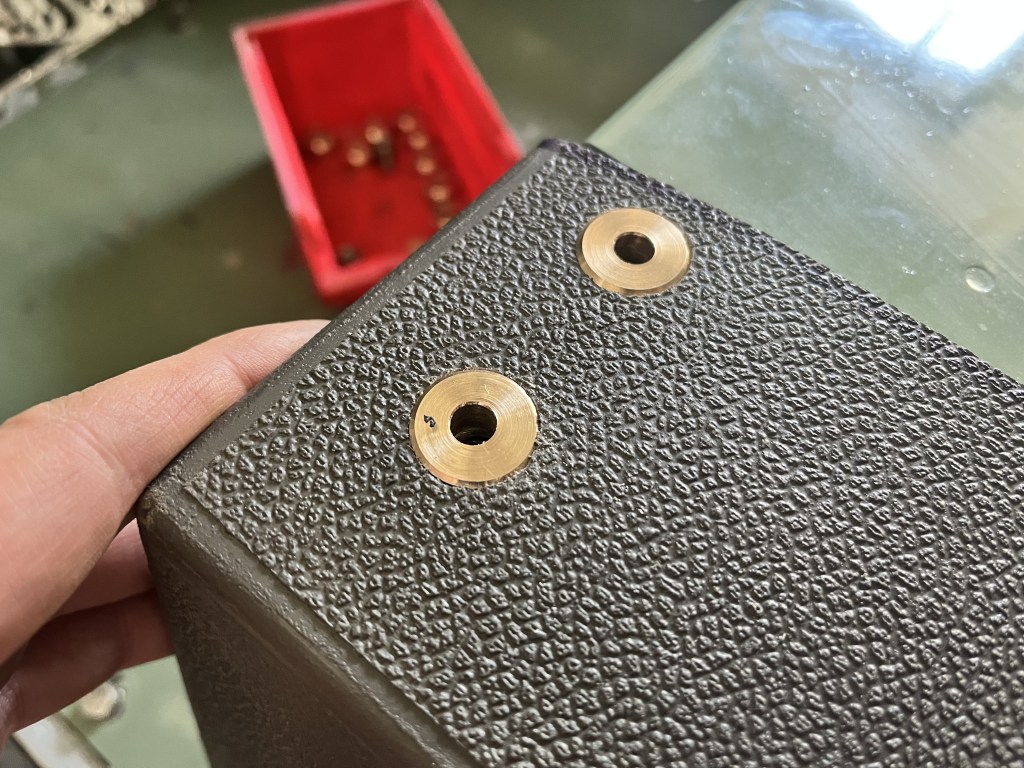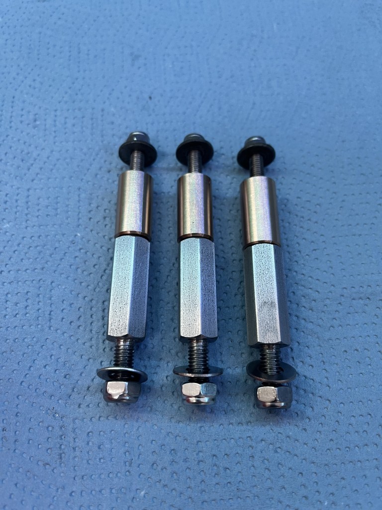 I wanted to avoid compressing the matt directly onto the seat rails once they were reinstalled. The matt, despite its density is still a compressible material. To avoid this, I machined 21, 10mm x 19mm dia bronze spacers. The instructions suggest using a stack of washers. This would work just as well.