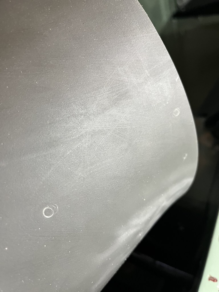 For some reason, I took no photos of the fuel tank cover, but rather than removing this section entirely, I left it attached at the rear. It’s easy enough to measure, mark out and cut on the cutting board and is by no means critical.