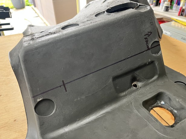 Next, the 21 penetrations for the seat rail fixings need to be marked out and cut. These are quite critical in order to align the seat rails with the holes in the seat box.